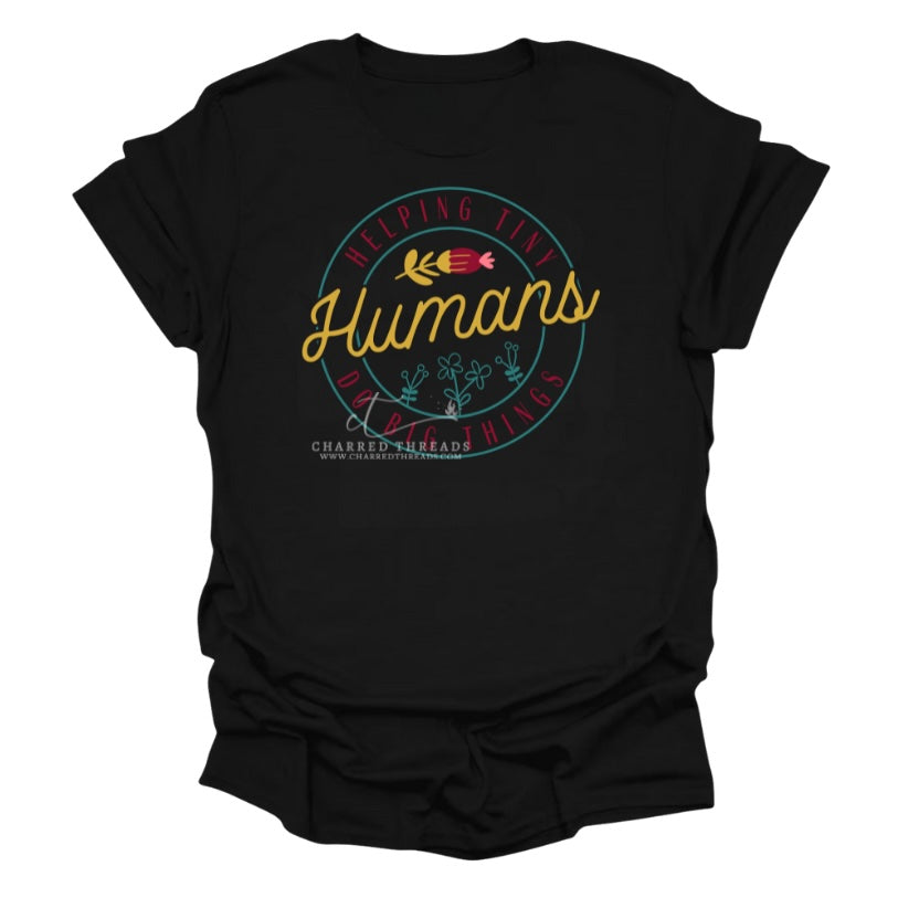 Helping Tiny Humans – Soft Floral Script Tee & Crewneck