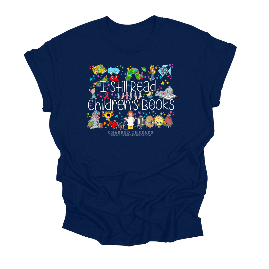 Celebrate your love for timeless stories with our I Still Read Children’s Books design! Featuring colorful illustrations of beloved characters, this shirt is perfect for teachers, librarians, parents, or anyone who proudly enjoys a good children’s book—no matter their age.